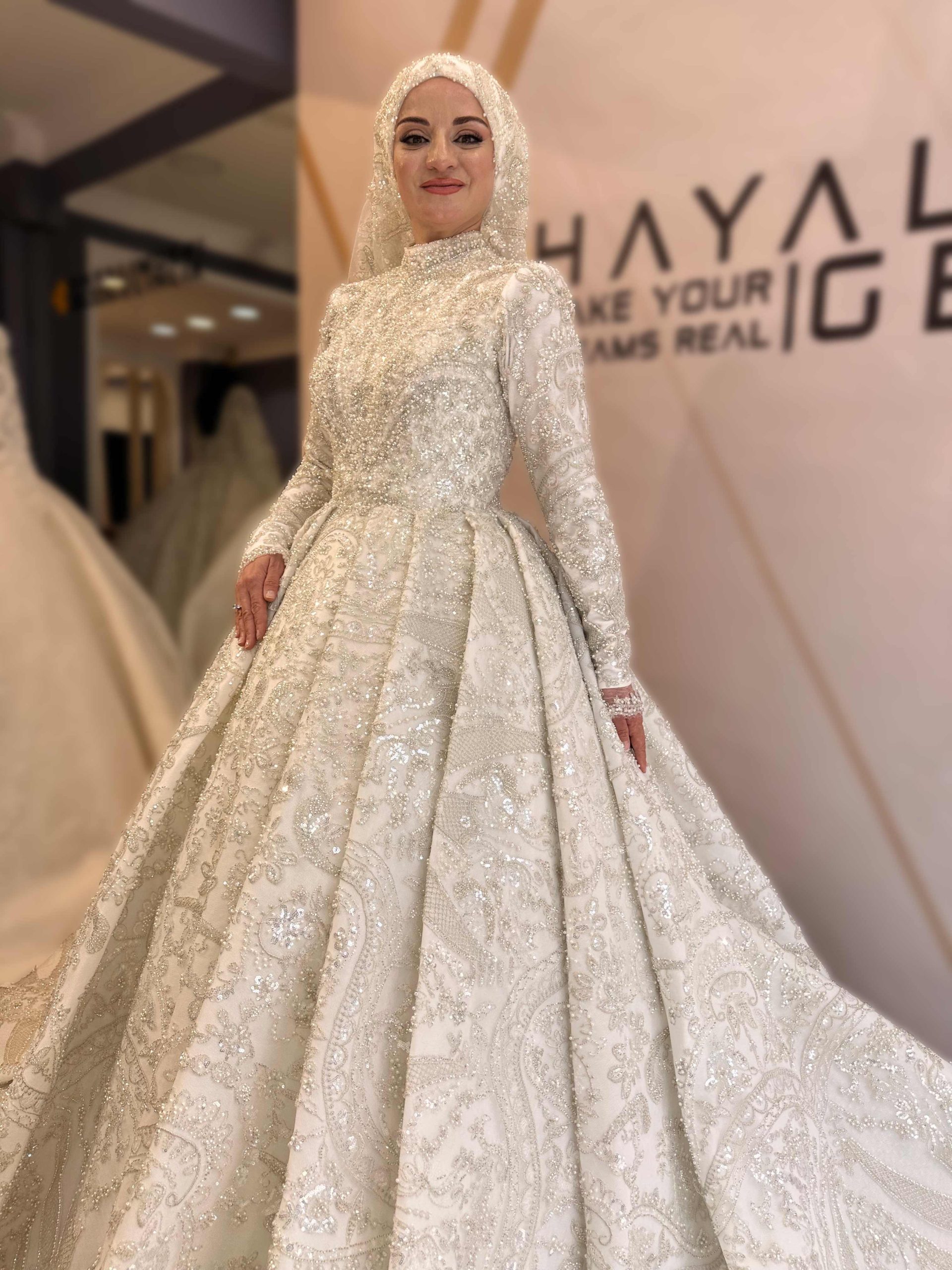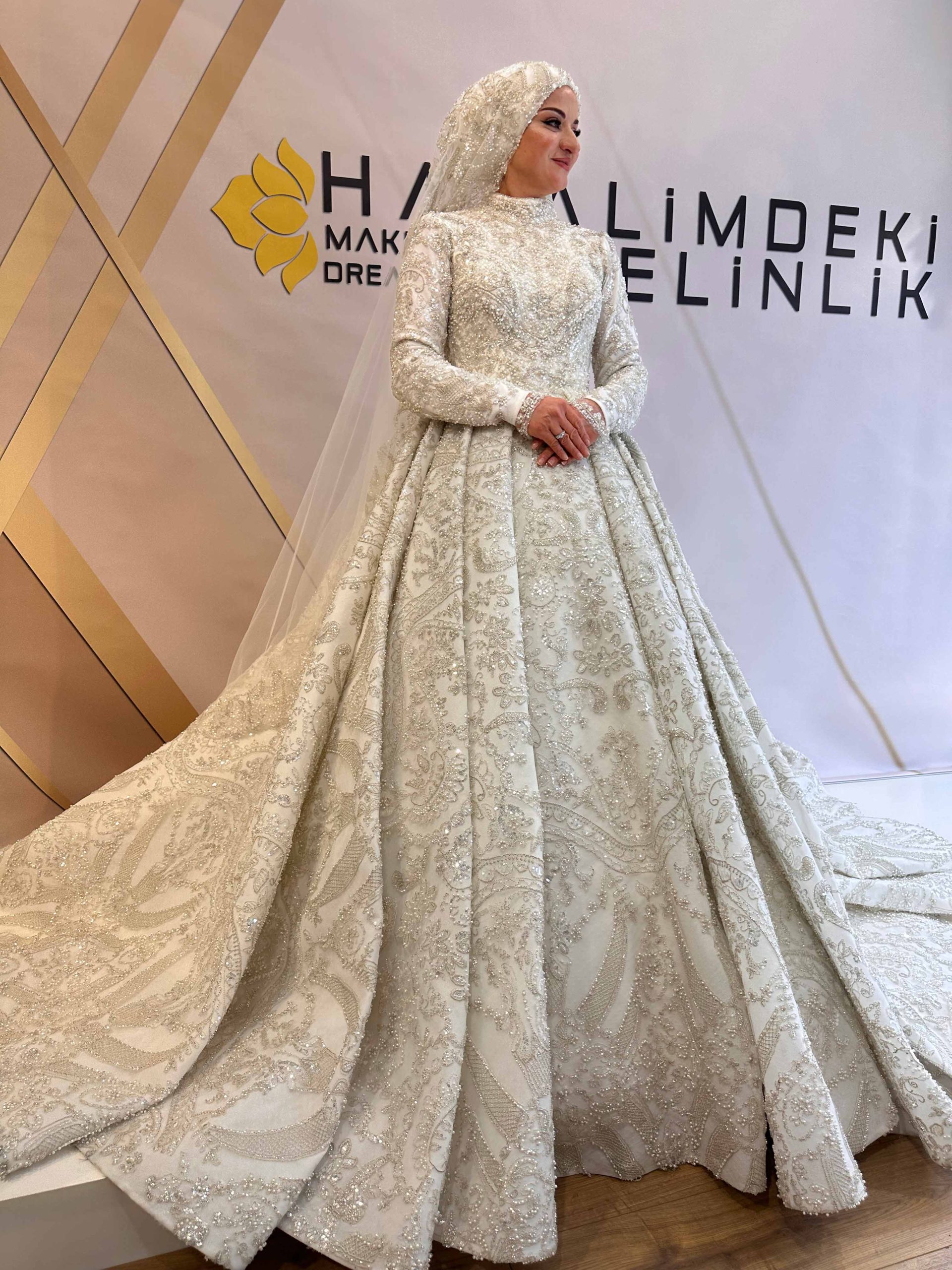 Uzun kollu ve tesettür yaka tasarımı çok rahat, salon düğünüm için birebir 💖