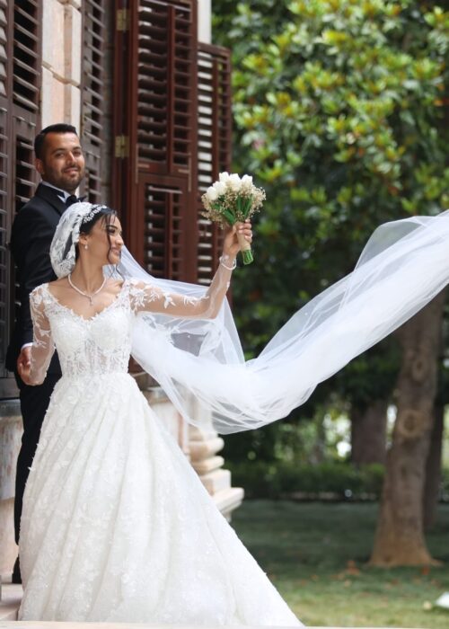 Komple dantel işlemeli uzun kollu prenses gelinlik modelimi düğünümde giydim ve harika bir görünüm elde ettim! Tüm dantel detayları çok zarifti ve uzun kolları gerçekten şıklık katıyor. Etek kısmı ise tam istediğim gibi hacimli ve gösterişliydi, adeta bir prenses gibi hissettirdi. Saç ve makyajla birleşince gece boyunca ışıldadım.