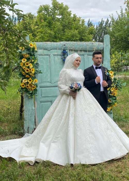 Komple dantel işlemeli uzun kollu prenses gelinlik, düğünümde tercih ettiğim mükemmel bir model oldu. Şıklığı ve zarafetiyle gerçekten göz alıcıydı. Dantel detayları oldukça ince işlenmiş ve tül kısmı da çok şık. Etek kısmı ise adeta bir prenses gibi hissettirdi. Hem rahat hem de gösterişli bir gelinlik arayanlar için kesinlikle tavsiye ederim.