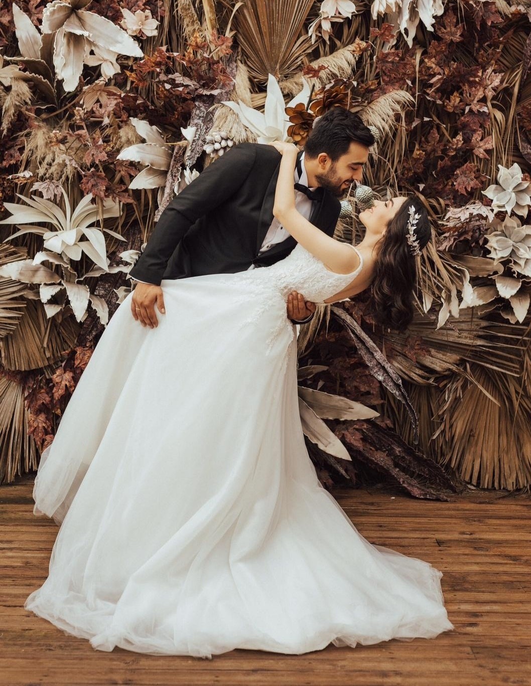 İnce askılarla v yaka tasarımını çok beğendim. Hem sade hem de şık bir model. Dantel detayları gerçekten zarif ve gelinliğe sofistike bir hava katıyor. Tül etek kısmı da çok hafif ve rahat, düğün boyunca rahatça hareket edebildim. Toplu saçı tercih etmedim, dağınık dalgalı saçlarla harika bir uyum sağladı. Her şey o kadar doğal ve güzel görünüyordu ki, herkes çok beğendi!