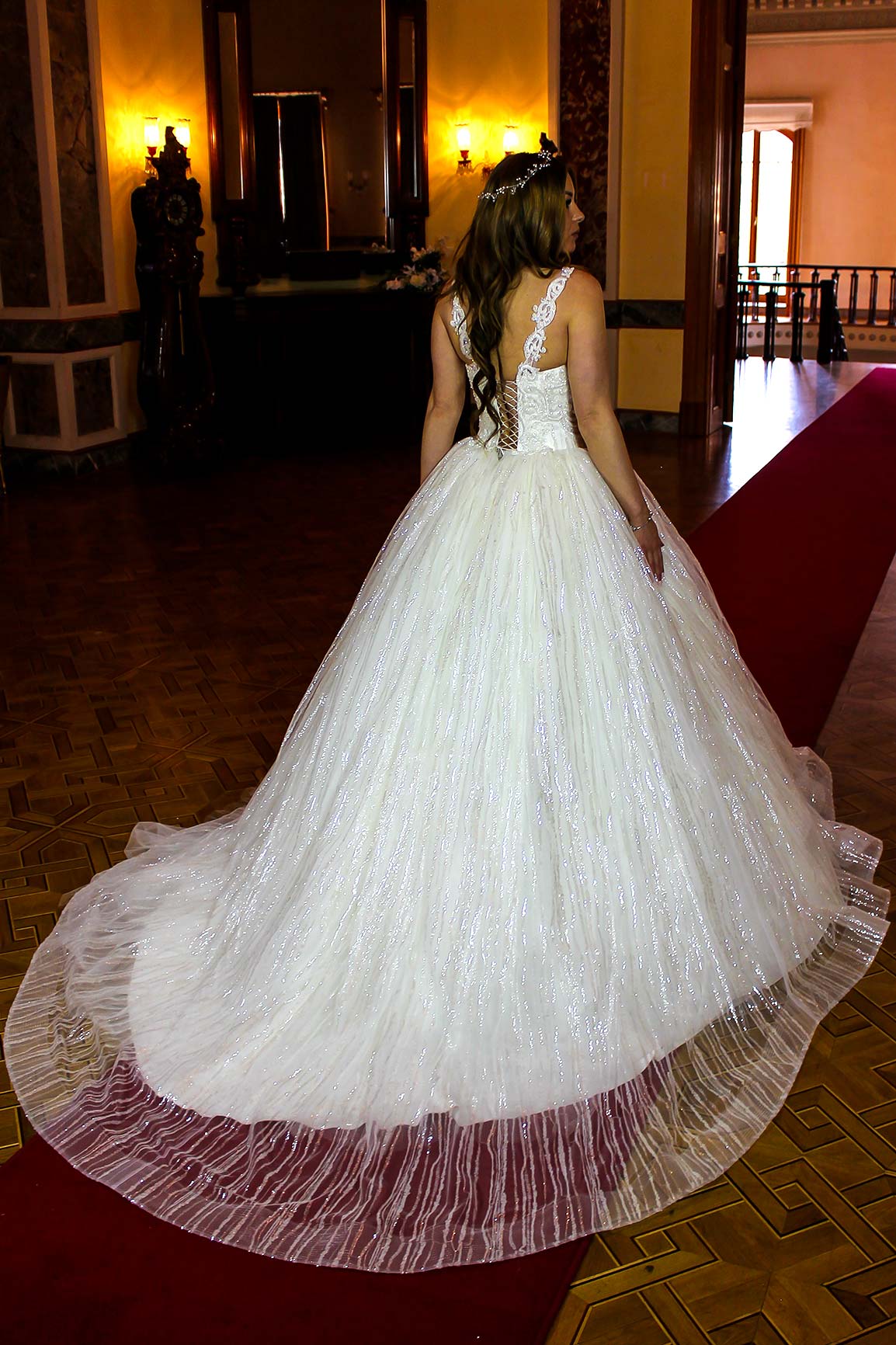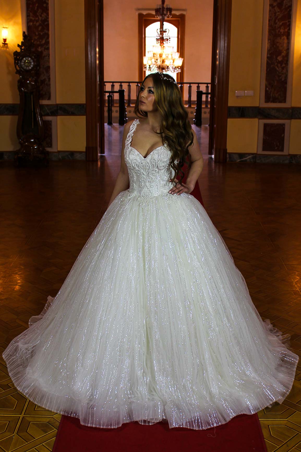 “İlk gördüğüm anda vuruldum! Gelinliğin hem prenses modeli gibi kabarık hem de zarif olması inanılmaz. Simli askıları çok şık bir detay katıyor. Kuyruksuz tercih ettim, bu sayede düğün boyunca özgürce dans edebildim. Kendimi özel hissettim, teşekkür ederim!”