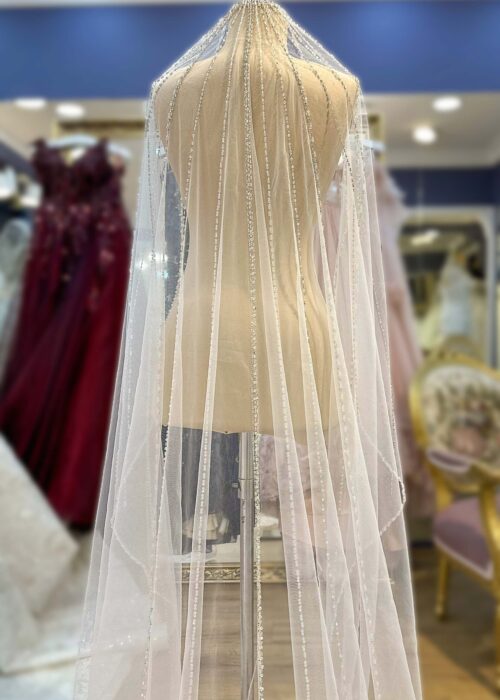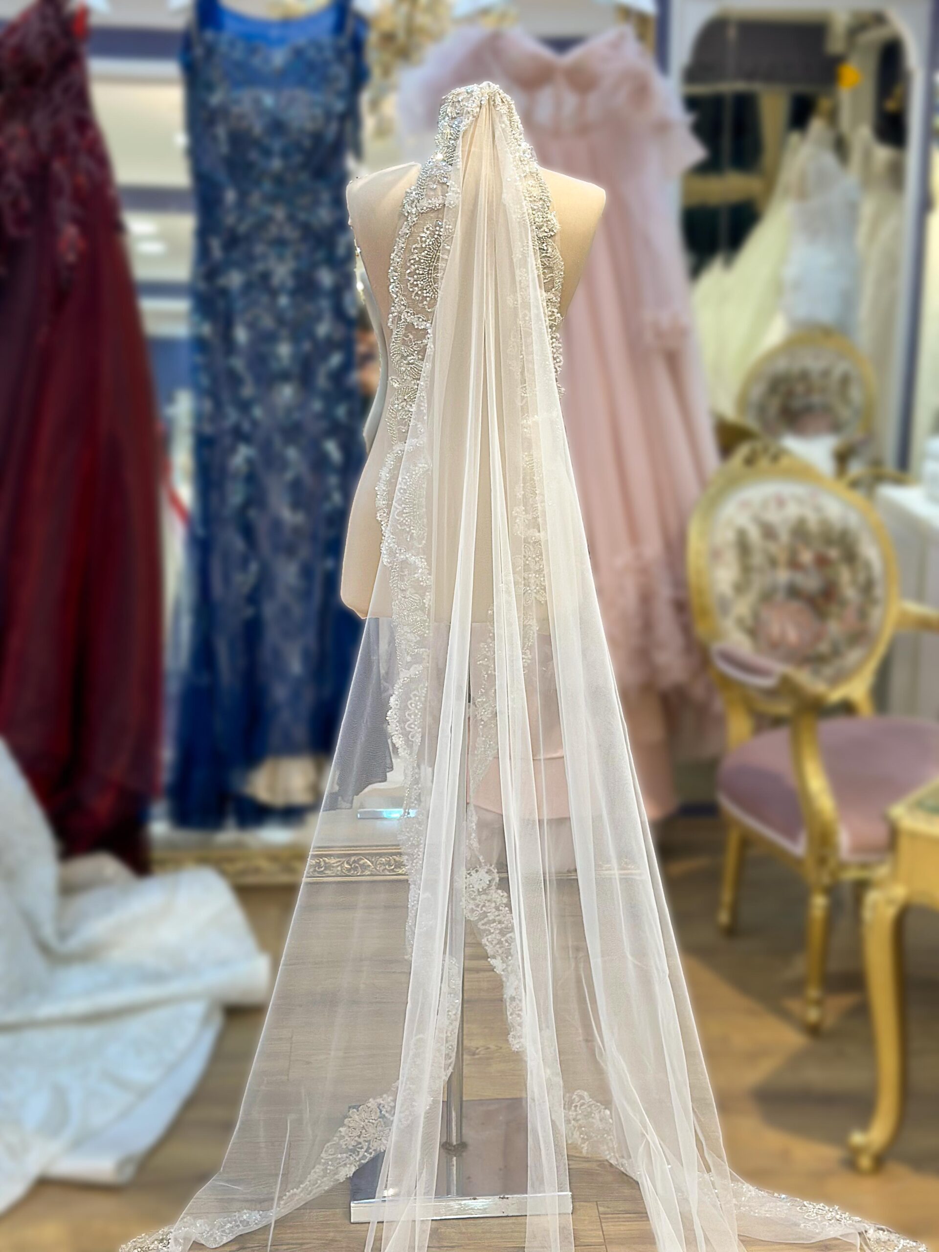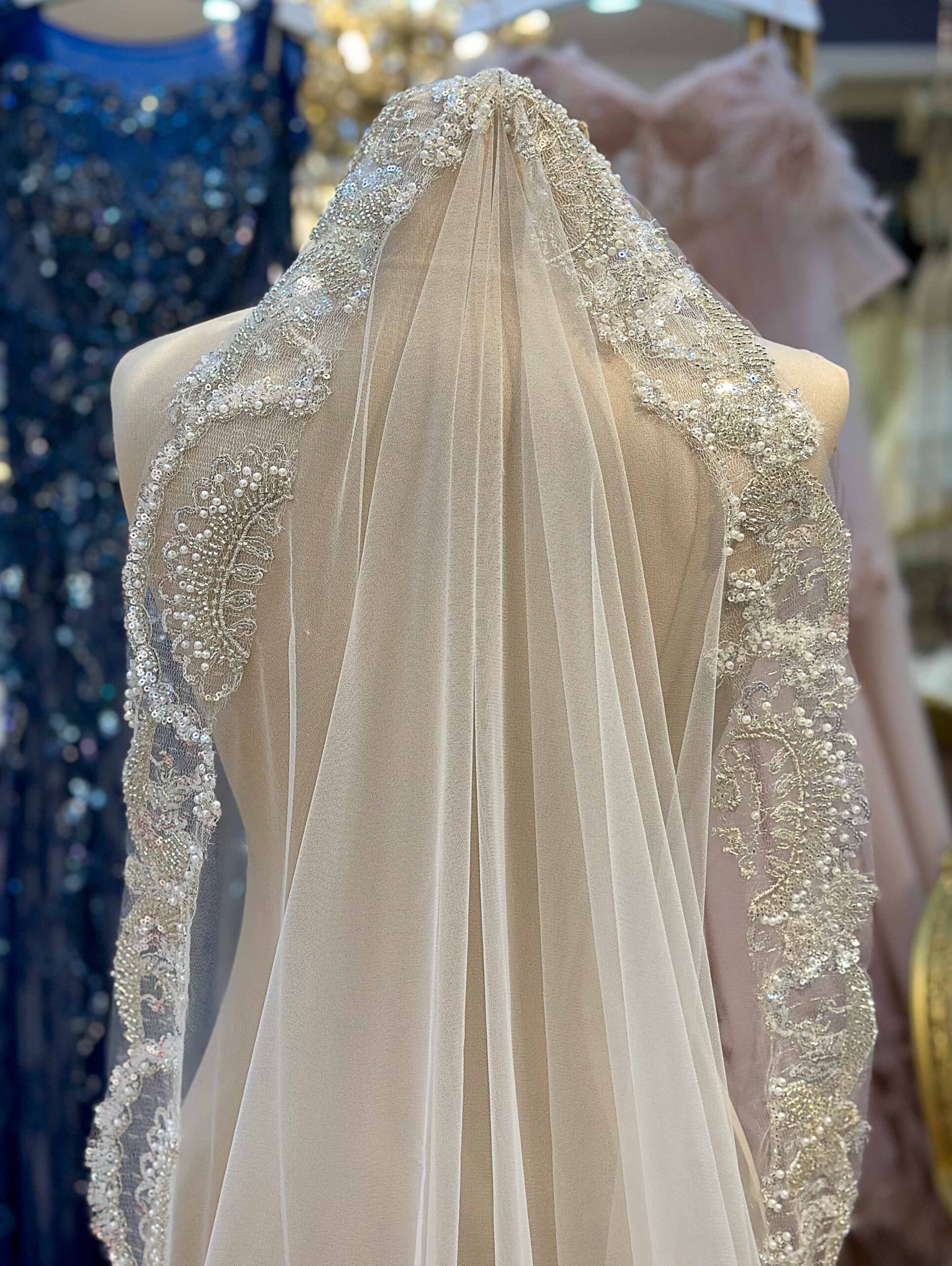 Tüm Kenarı İşlemeli Dantelli Tül Duvak