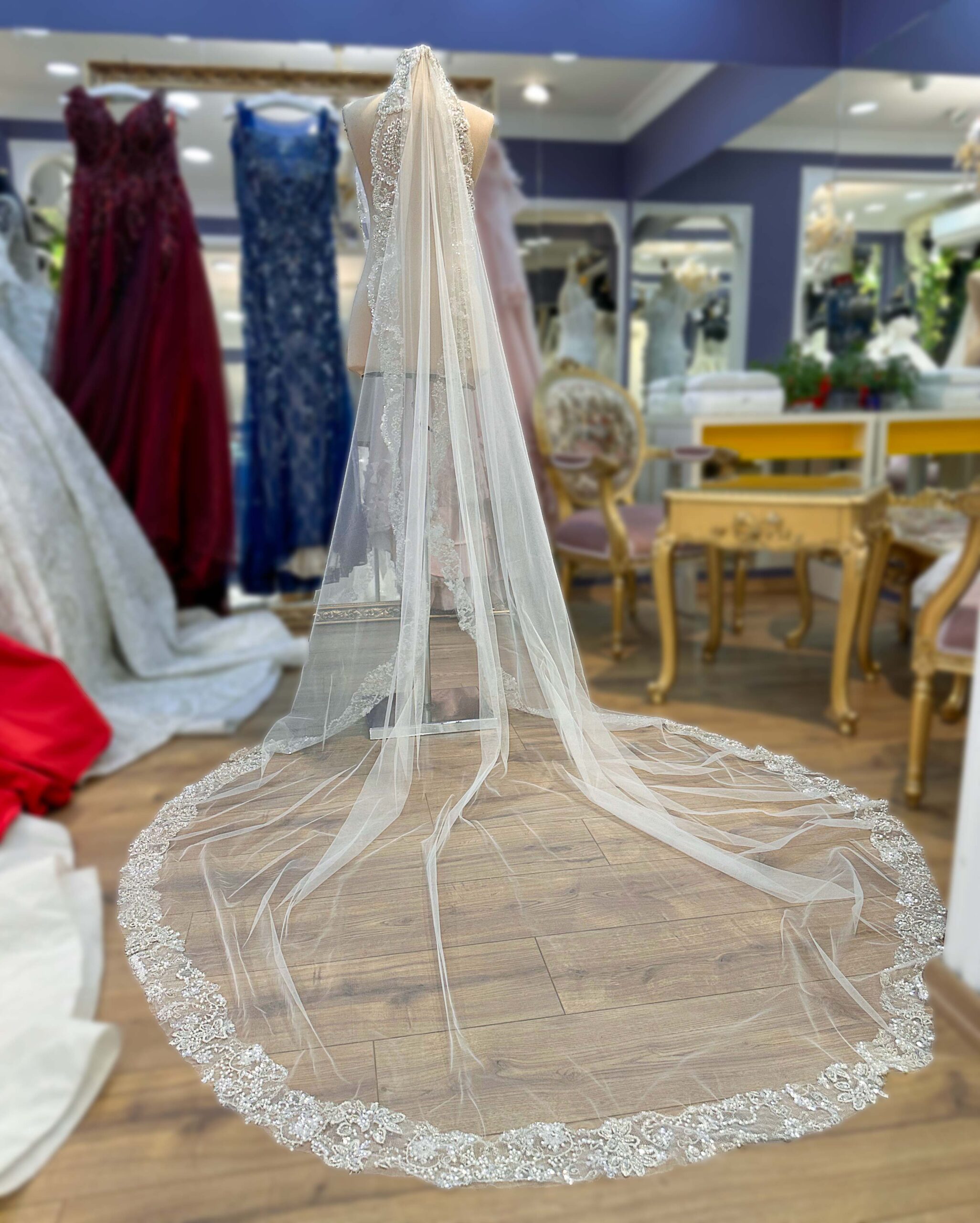 Tüm Kenarı İşlemeli Dantelli Tül Duvak için 4 değerlendirme