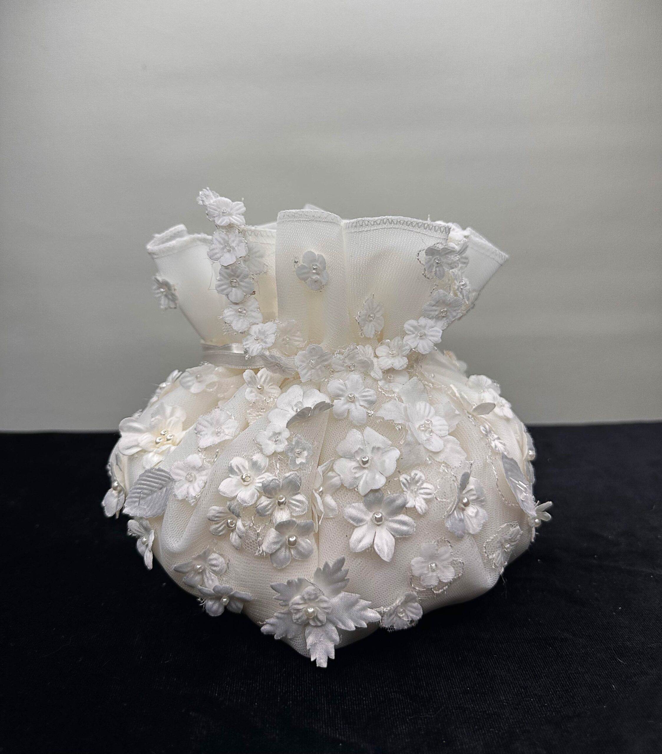 Üç Boyutlu Çiçekli Organze Gelin Kesesi