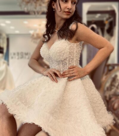 Bu tarz modeller, özgürce dans etmek isteyen gelinler için hem konforlu hem de dikkat çekici bir alternatiftir. Özellikle sade topuklu ayakkabılar ve zarif saç aksesuarlarıyla tamamlandığında, kısa gelinlikler modern bir özgüven ifadesine dönüşür.